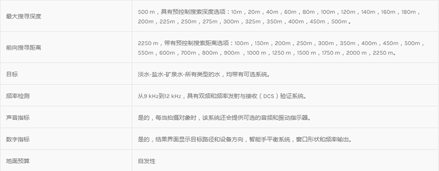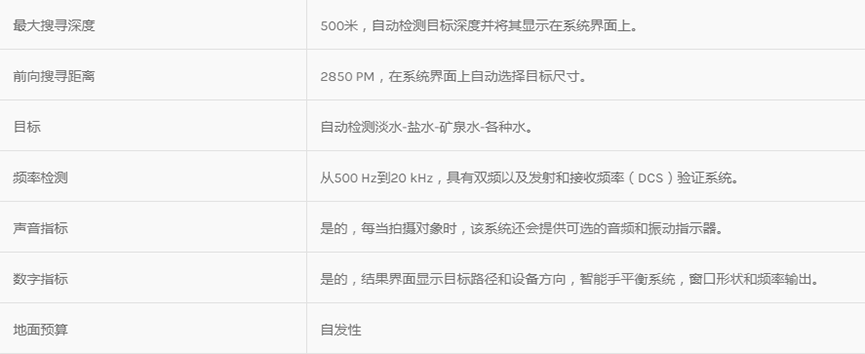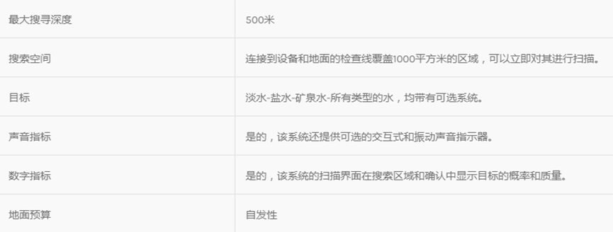 ? 該系統(tǒng)采用勘測和地球物理測量技術(shù),以測量土壤的電阻水平,確定地下水和自流井的位置。