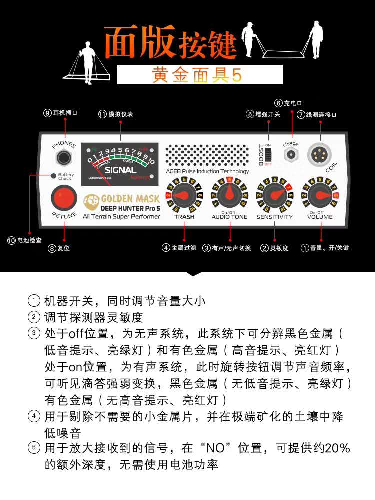 保加利亞黃金面具升級(jí)版PRO5大深度大范圍抗高壓脈沖金屬探測(cè)器