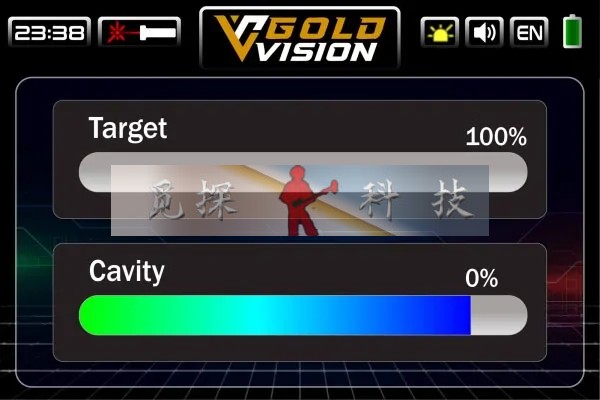 頂部的一個進(jìn)度條代表來自金或鐵等金屬目標(biāo)的信號強(qiáng)度,底部的第二個進(jìn)度條向我們顯示來自地下空隙(例如隧道、空洞或間隙)的信號強(qiáng)度。
